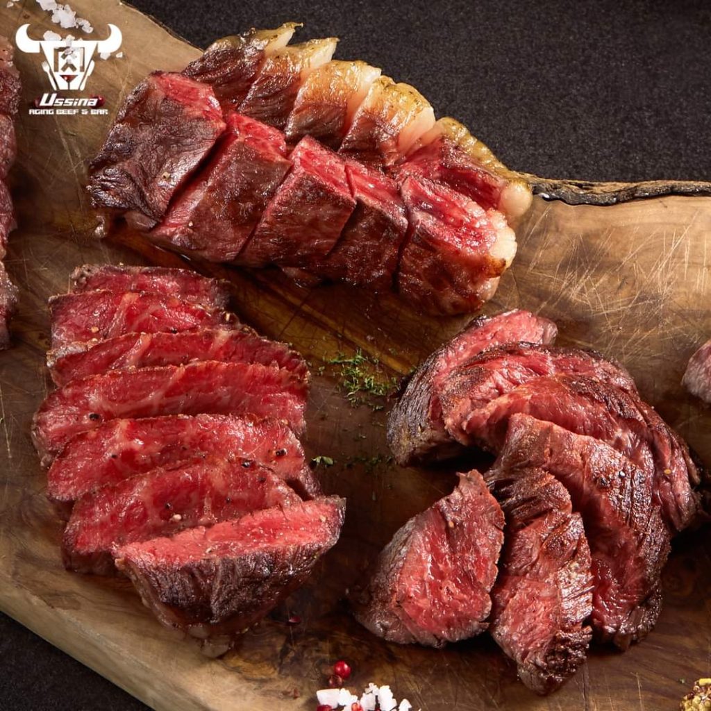 Ngoài những phần như lõi vai, nạc vai hay lõi mông thường thấy, tại Ussina có 3 lựa chọn signature và cũng là phần ngon – giá trị nhất: thăn ngoại (sirloin), thăn nội (tenderloin) và lõi thăn sườn (ribeye).