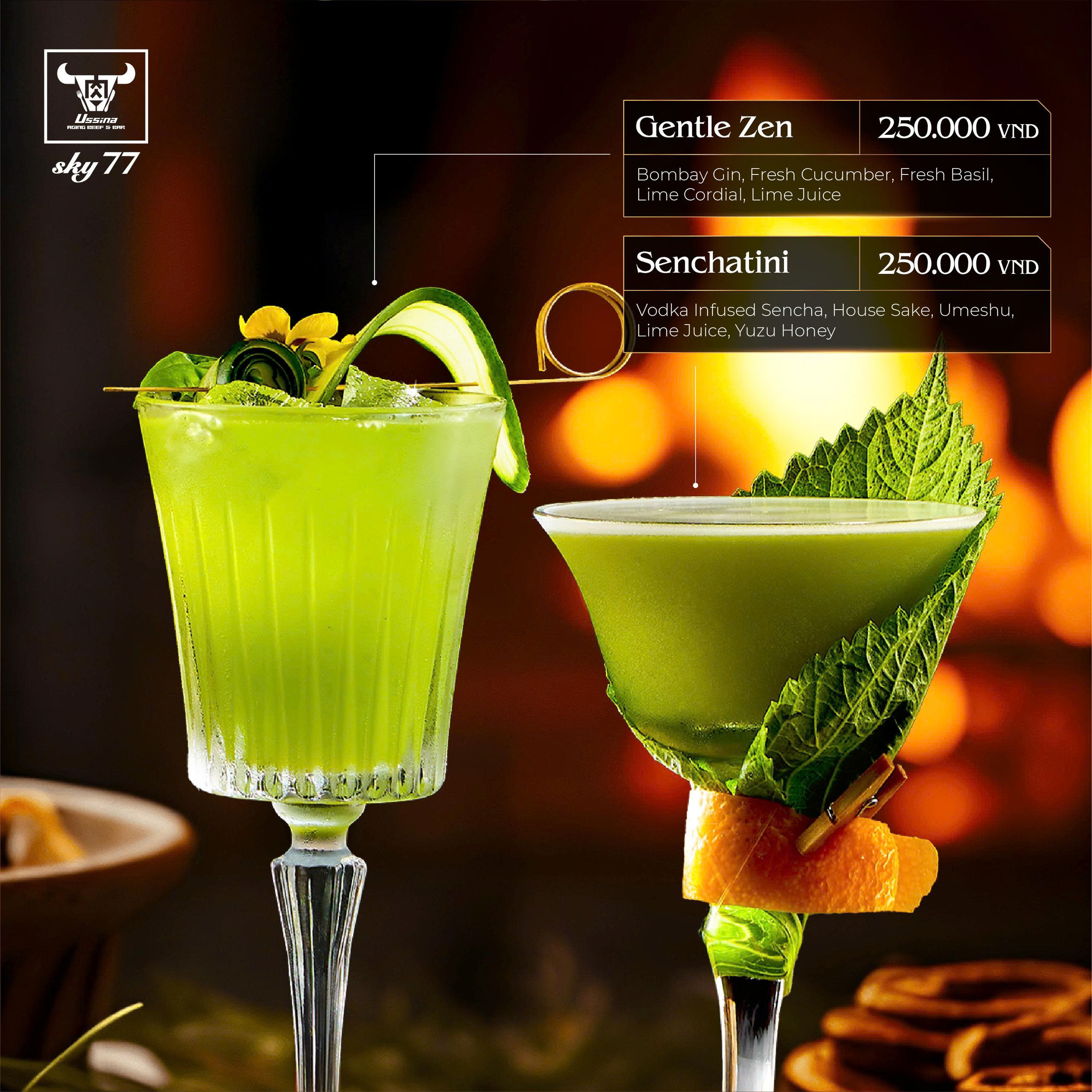 Đặc biệt, sự giao thoa văn hóa đã mở ra cánh cửa cho những sáng tạo đột phá, nơi các nguyên liệu Á Đông – như trà xanh, Umeshu (rượu mơ) hay Yuzu (chanh Nhật) – được đưa vào ly Cocktail. Tiên phong trong xu hướng này, Ussina Sky 77 mang đến một bộ sưu tập thức uống độc quyền, kết hợp tinh hoa phương Tây và sự thanh lịch của hương vị Nhật Bản, hoàn hảo cho bữa tiệc cuối năm sang trọng của bạn.