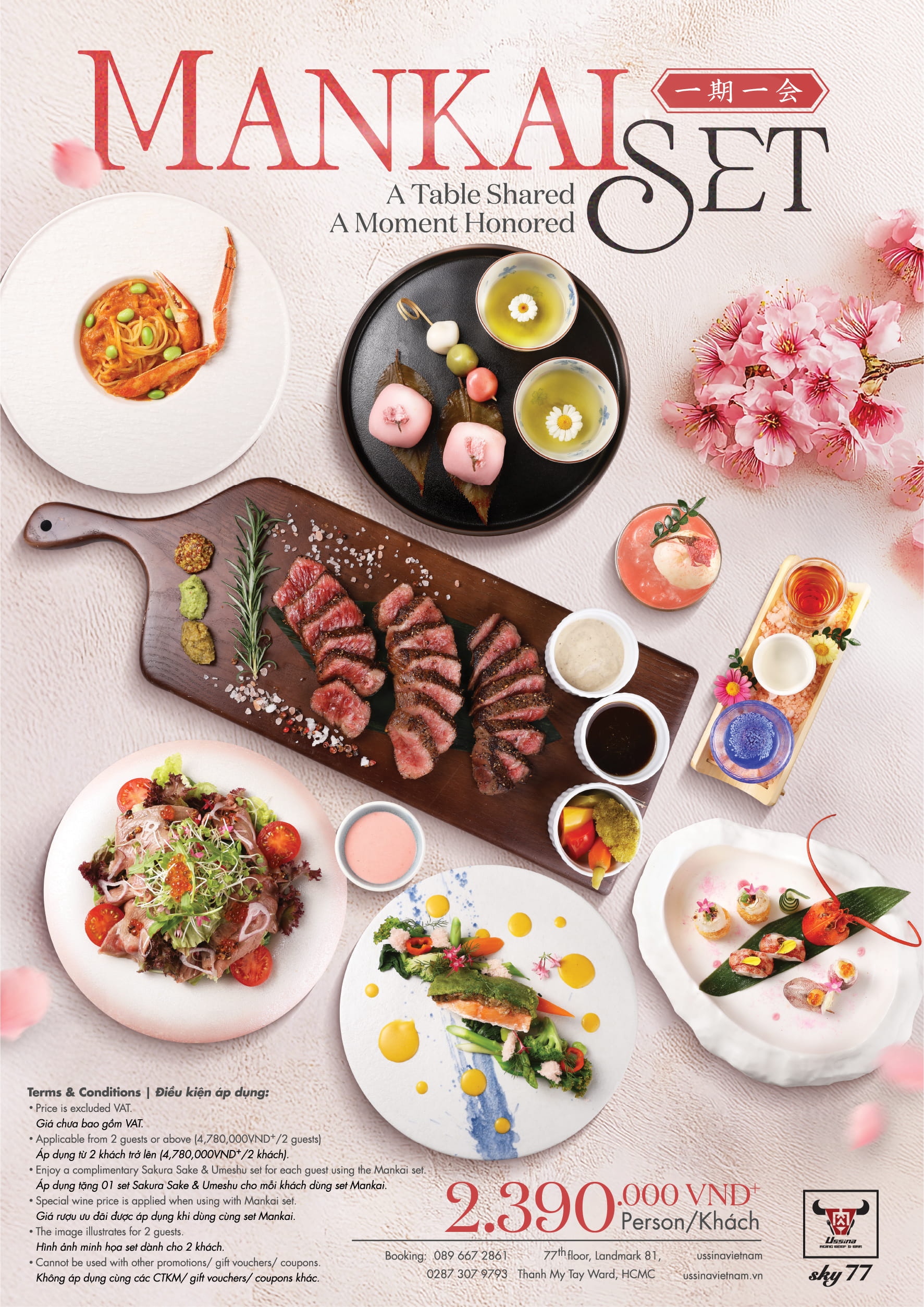 Lấy cảm hứng từ triết lý “Ichigo Ichie – mỗi cuộc gặp gỡ chỉ đến một lần trong đời”, Mankai set chuẩn bị ra mắt tại Ussina lan tỏa một thông điệp dịu dàng: “Hãy trân trọng những lần ta có cơ hội dùng bữa cùng nhau”. Ussina không chỉ mang đến một hành trình ẩm thực mùa xuân xứ Phù Tang, mà còn mở ra một không gian hoàn hảo để những cuộc hội ngộ trở nên trọn vẹn nhất.