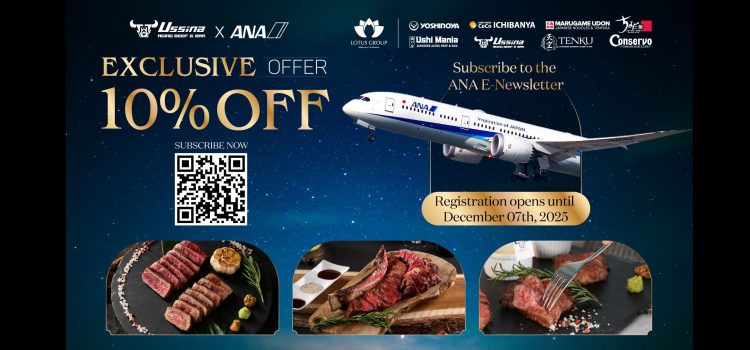 Ussina is honored to partner with All Nippon Airways (ANA) to offer a special privilege exclusively for customers who subscribe to ANA’s e-newsletter.